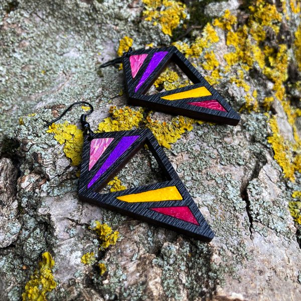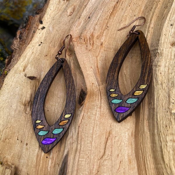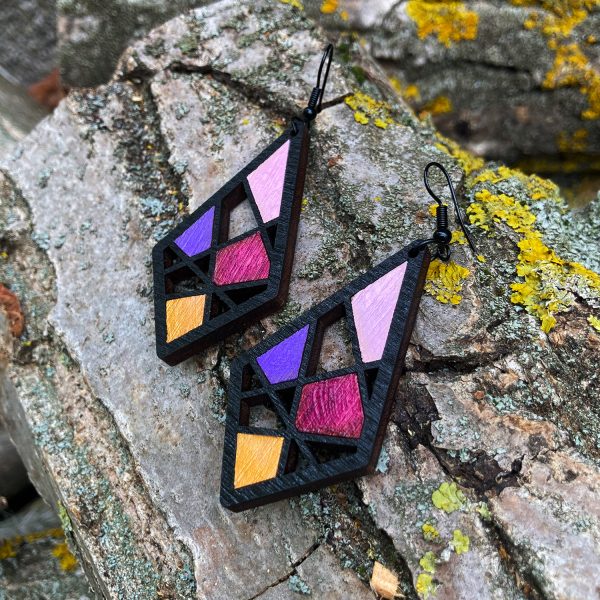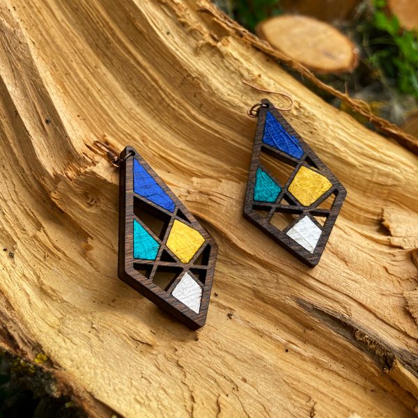 Cercei din Lemn Intarsie Stained Glass – Wenge