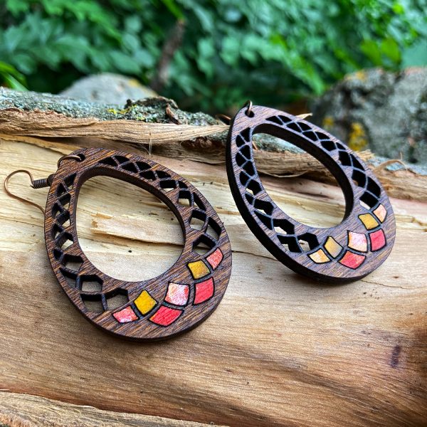 Cercei din Lemn Intarsie Stained Glass – Nuc