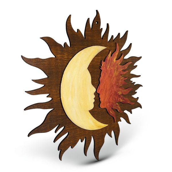 Tablou din lemn pictat manual Soarele si Luna – Color