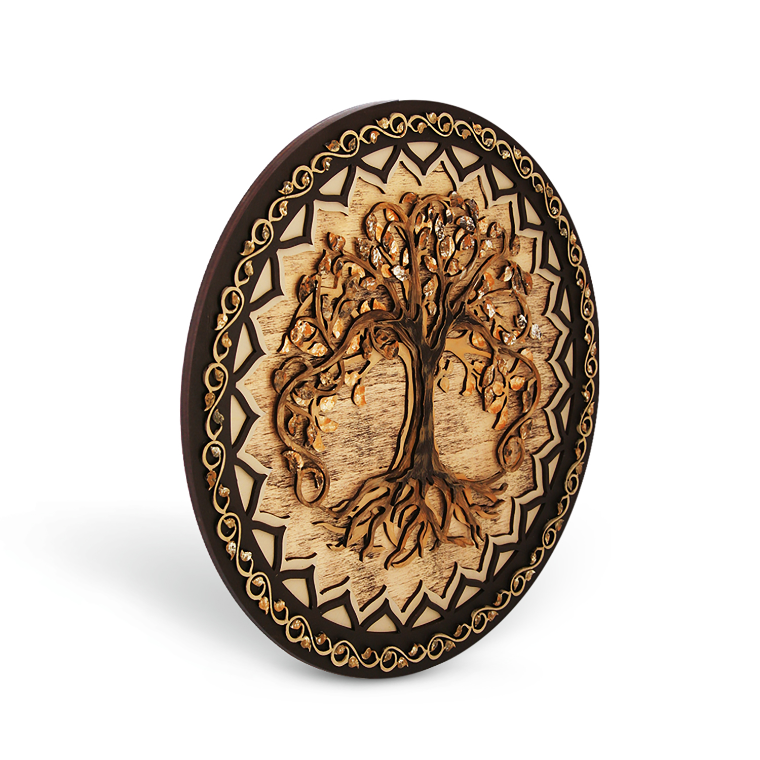 Home/Highly Objects/Home deco/Tablou lemn pictat manual – The Tree of Life – rotund