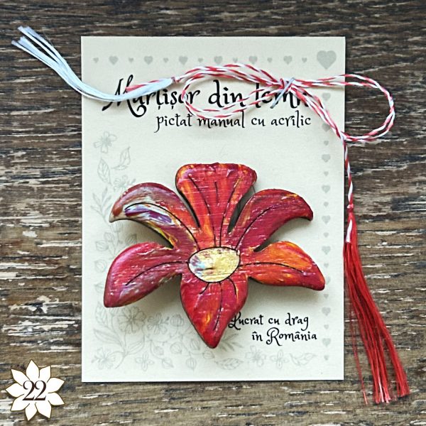 Brosa Unicat din Lemn Pictata Manual – Martisor Floare 1
