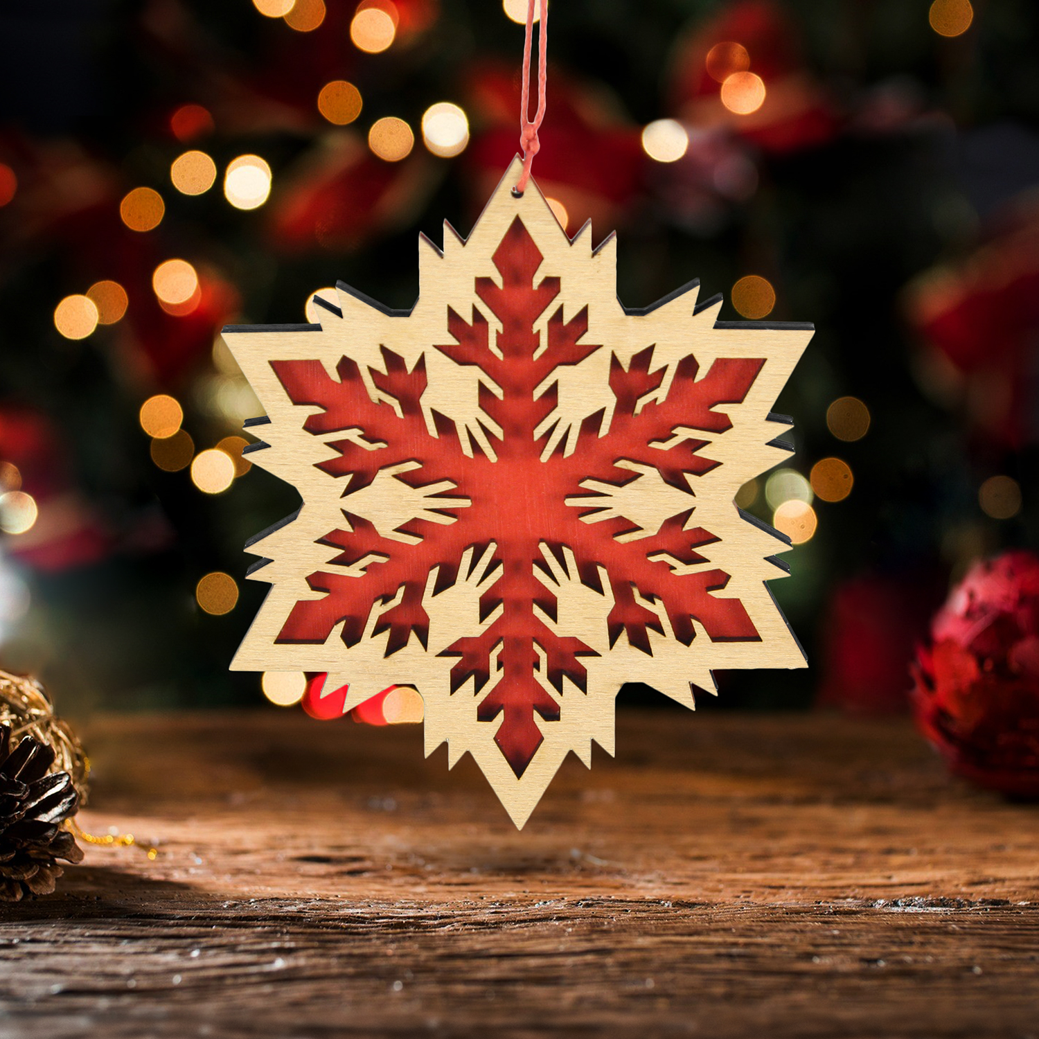 Decorațiune pentru Pomul de Crăciun – Fulg de Nea lucrată în atelierul RedOwlCraft® în lemn de fag și HDF vopsit manual în acrilic