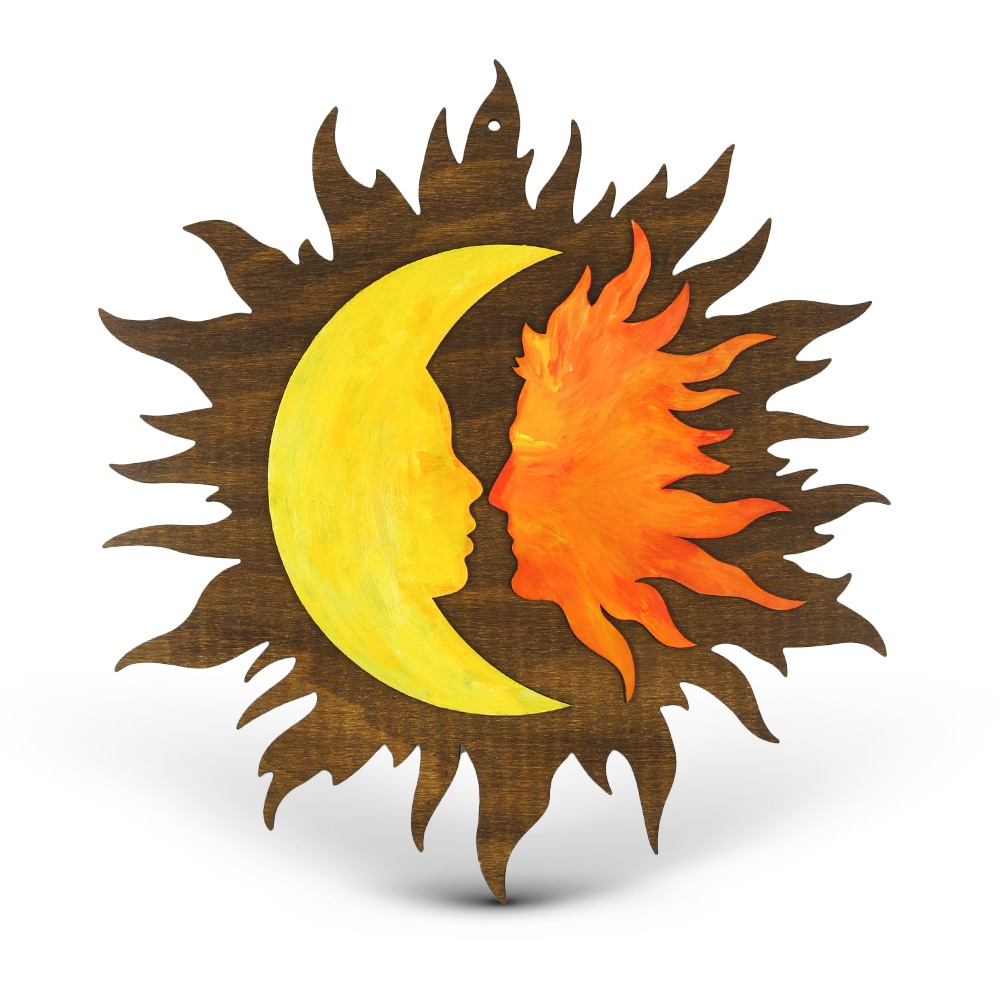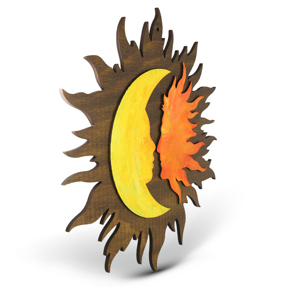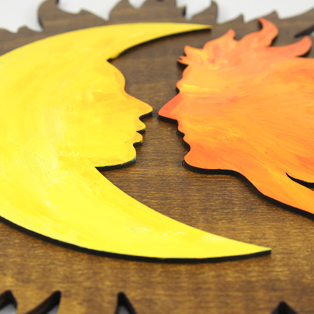 Tablou din lemn pictat manual Soarele si Luna – Color