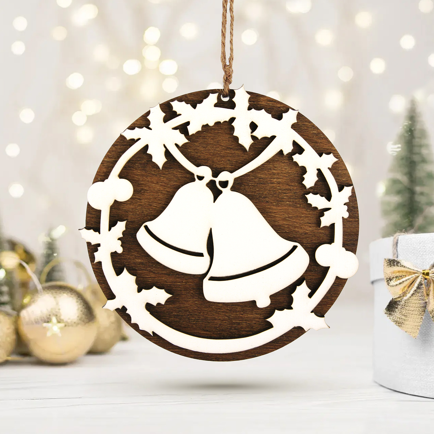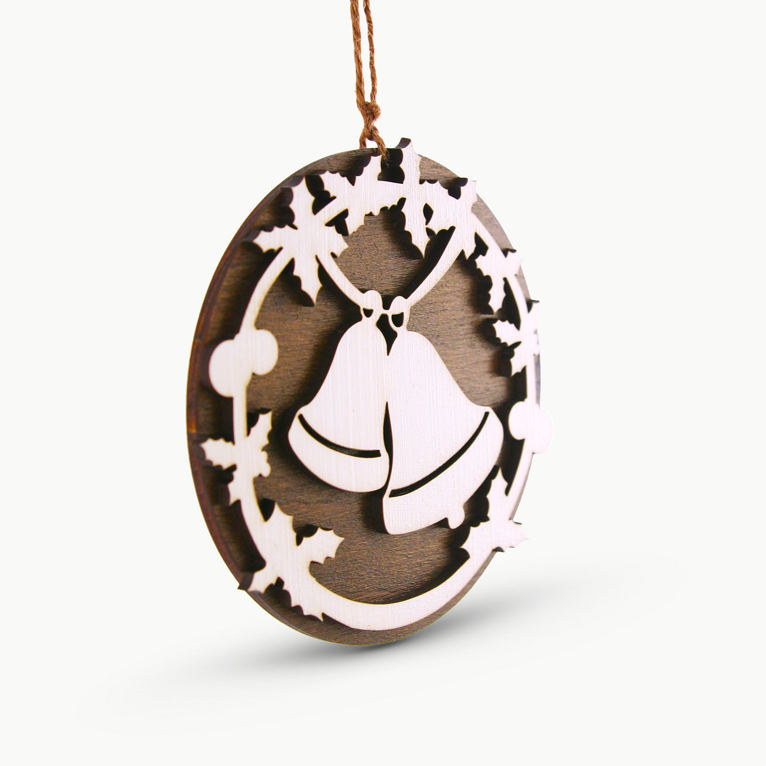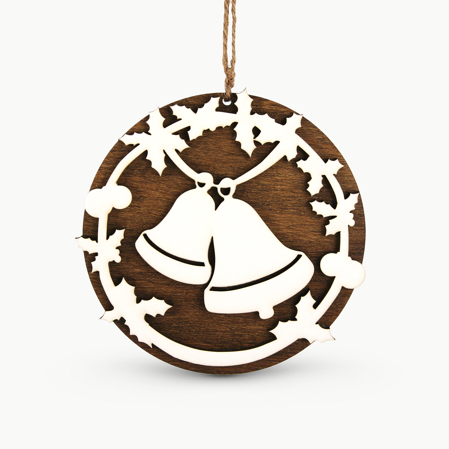 Decorațiune pentru Pomul de Crăciun – Motiv Clopoței lucrată în atelierul RedOwlCraft® în lemn de fag și HDF vopsit manual în acrilic.