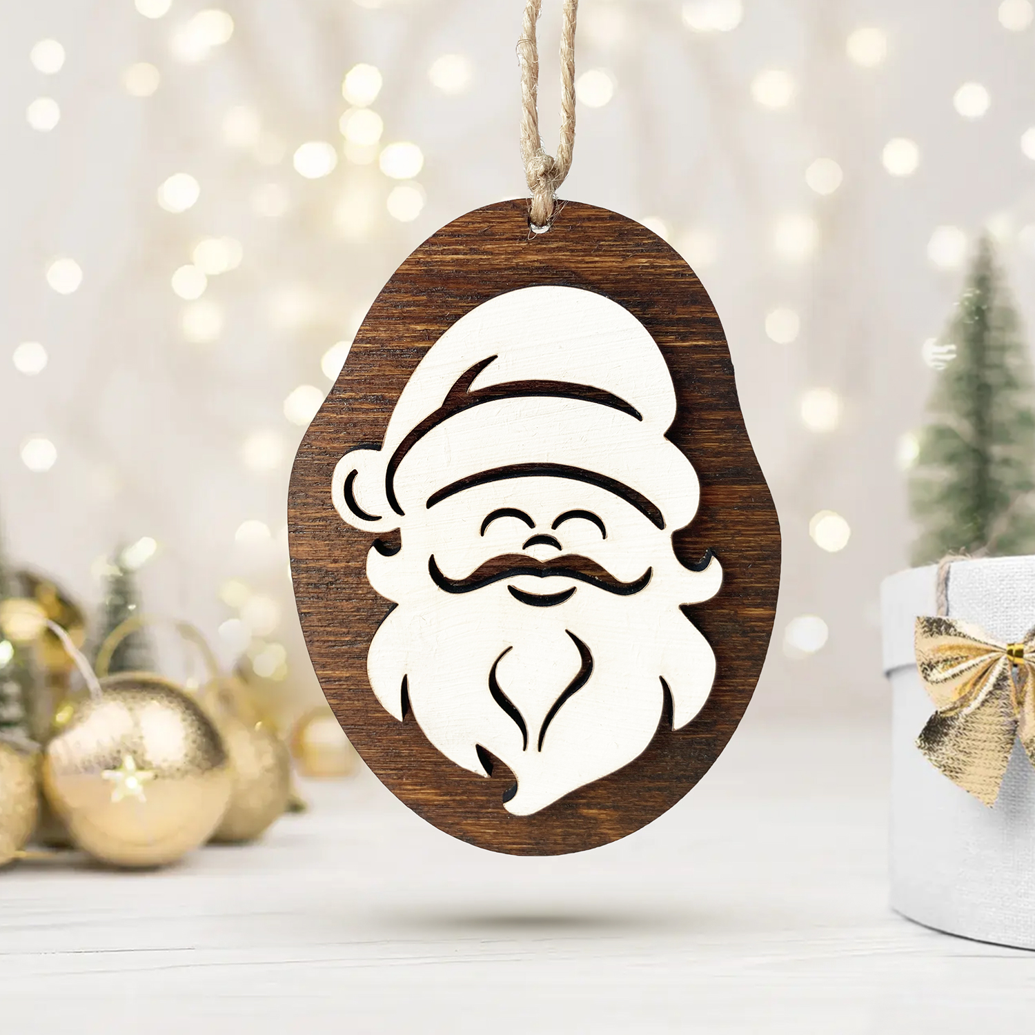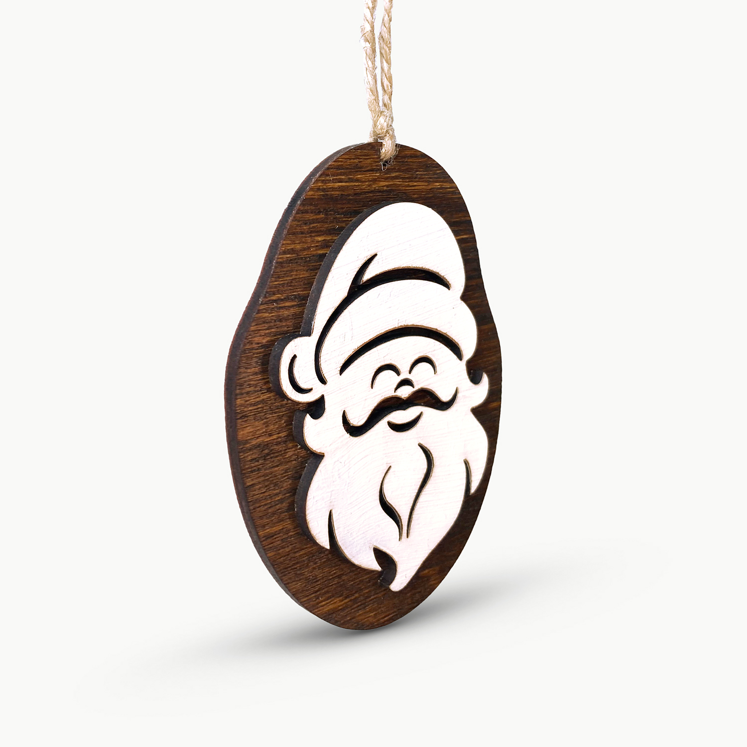 Decorațiune pentru Pomul de Crăciun – Motiv Moș Crăciun lucrată în atelierul RedOwlCraft® în lemn de fag și HDF vopsit manual în acrilic.