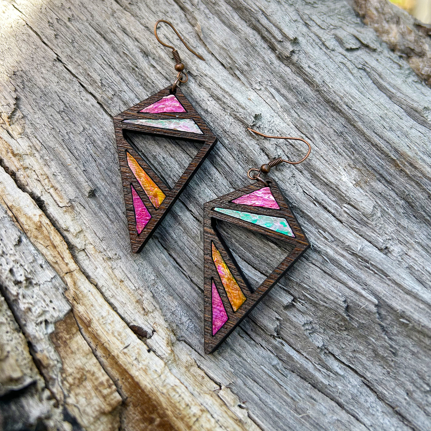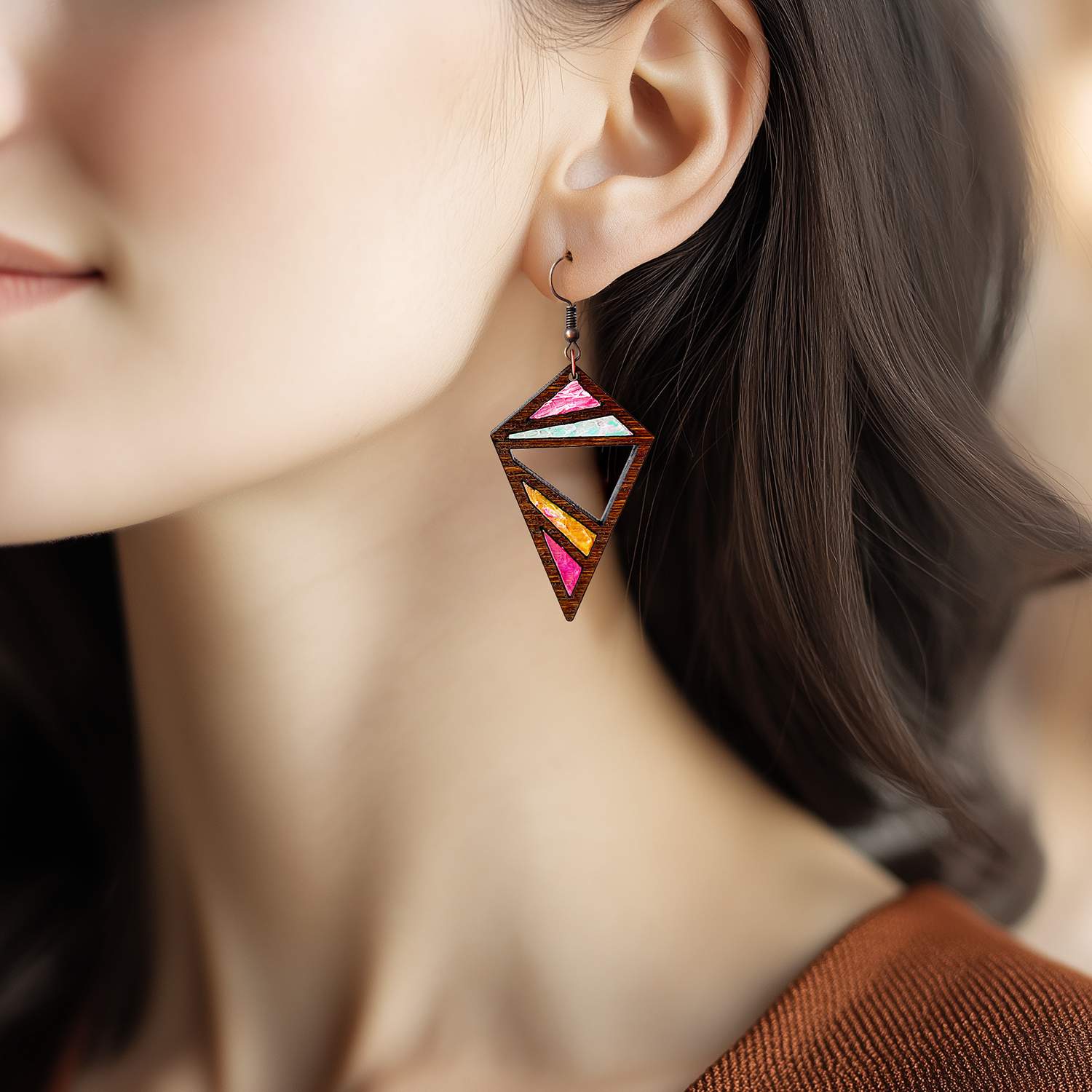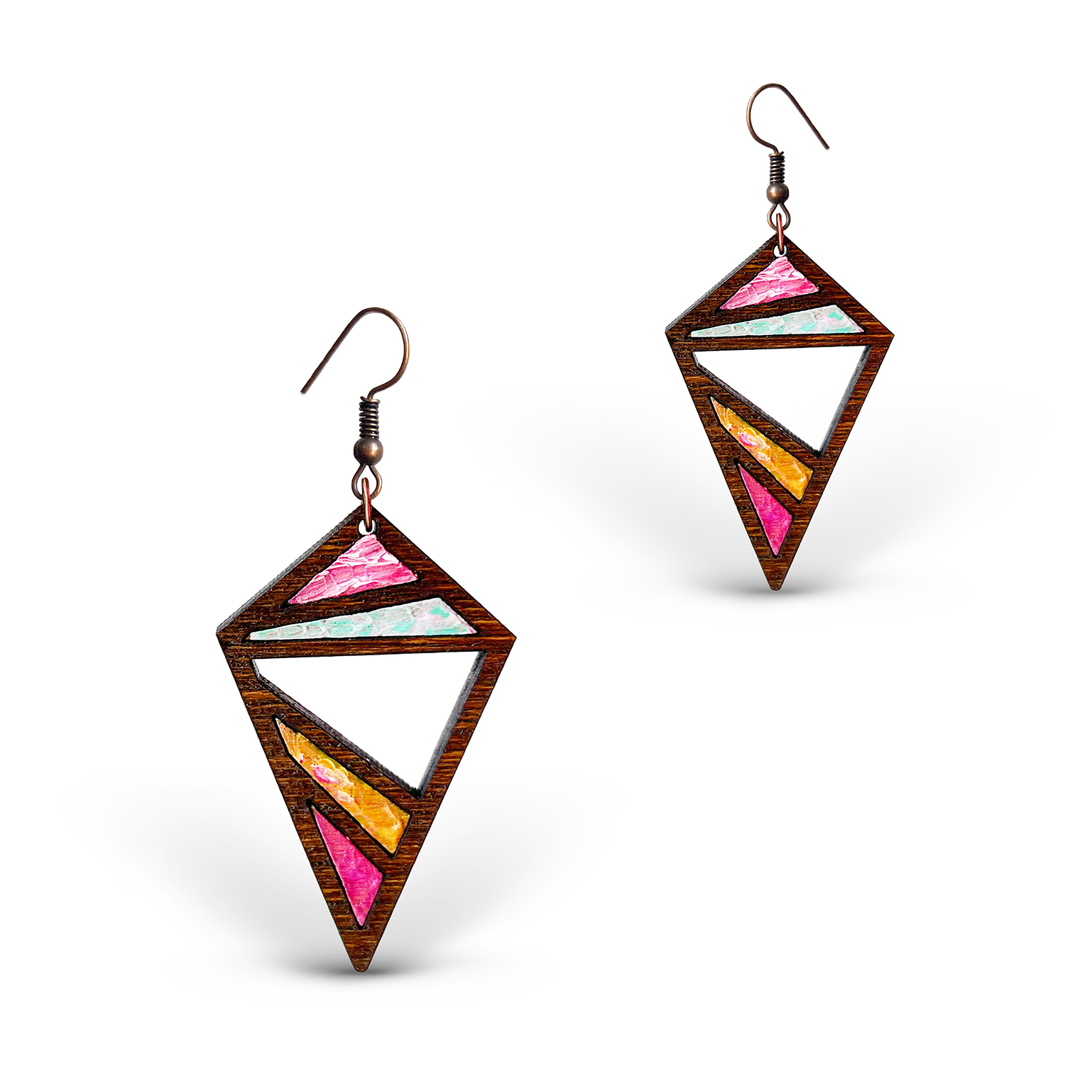 Cercei din Lemn Intarsie Mosaic – Nuc 2