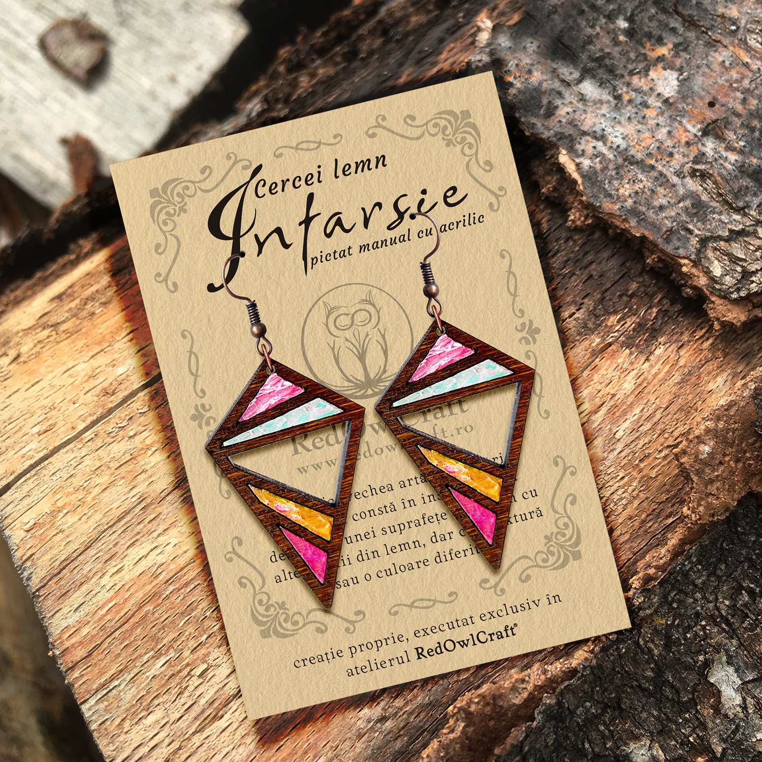 Cerceii din lemn Unicat, lucrați în exclusivitate în Atelierul RedOwlCraft®, sunt o îmbinare a meșteșugului traditional cu cel modern. Împletim în făurirea lor vechea tehnică a intarsiei cu frumusețea picturii manuale.