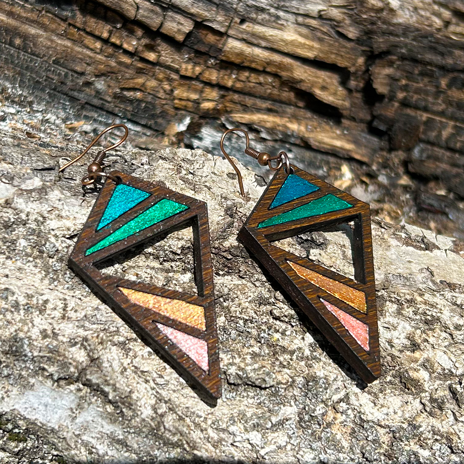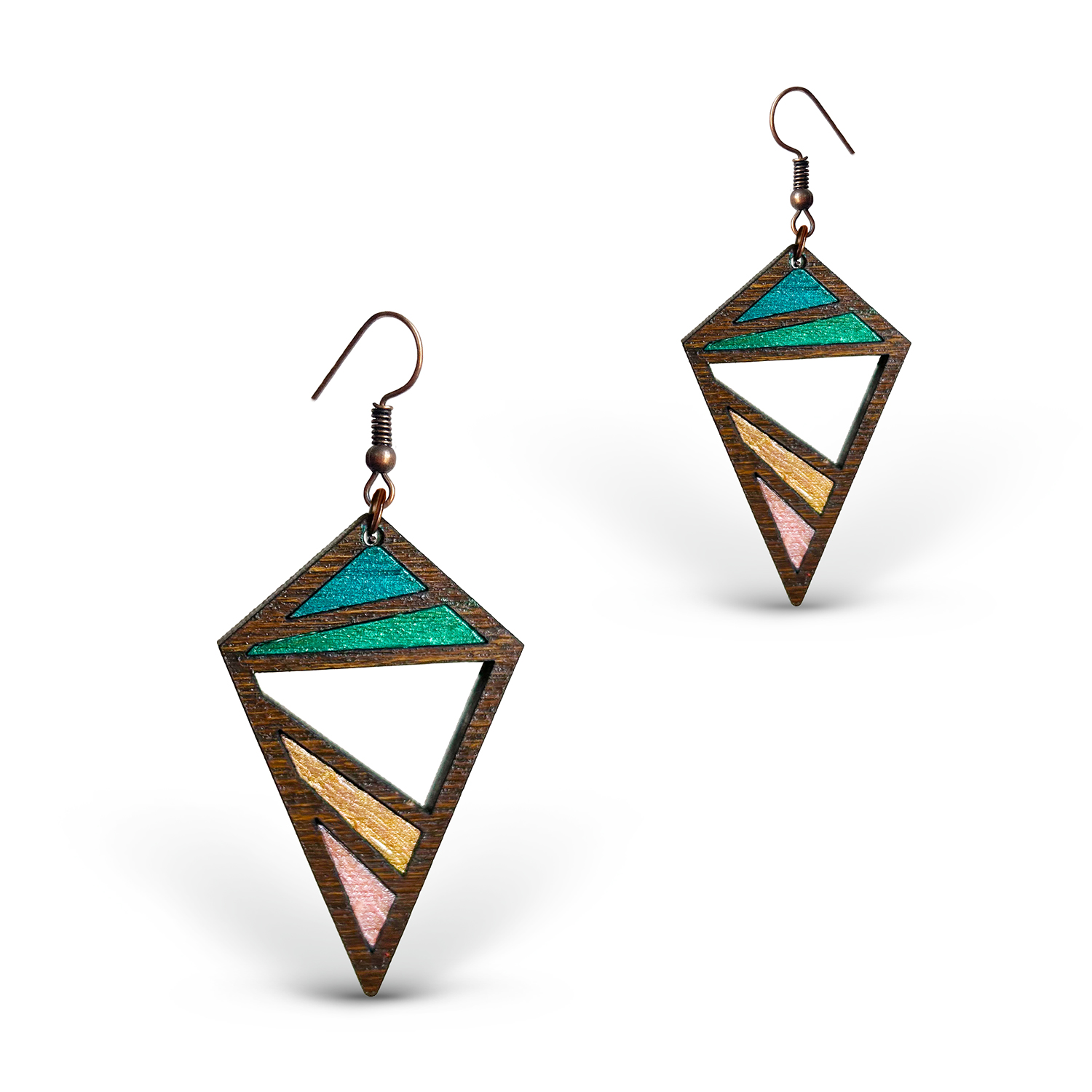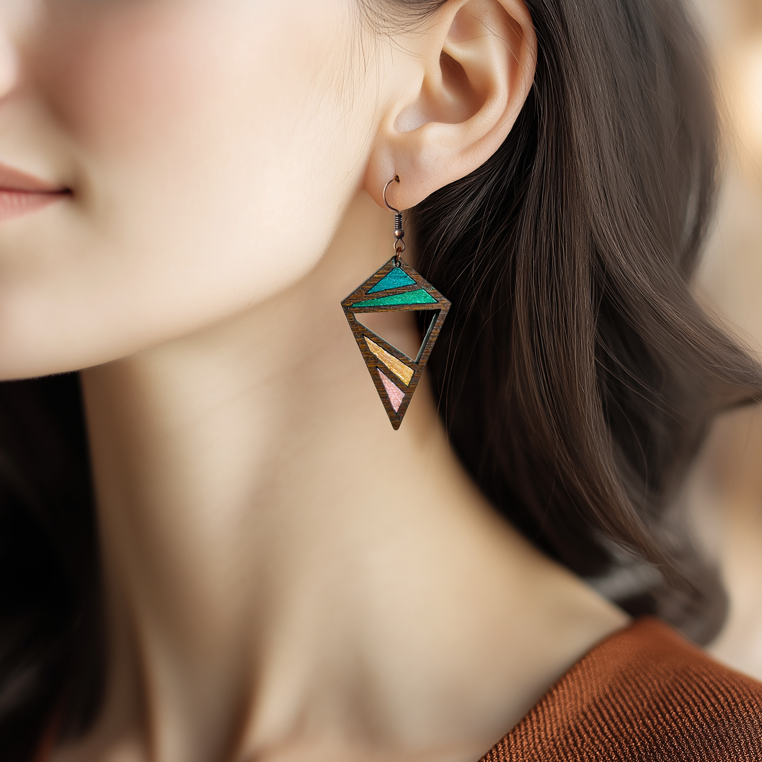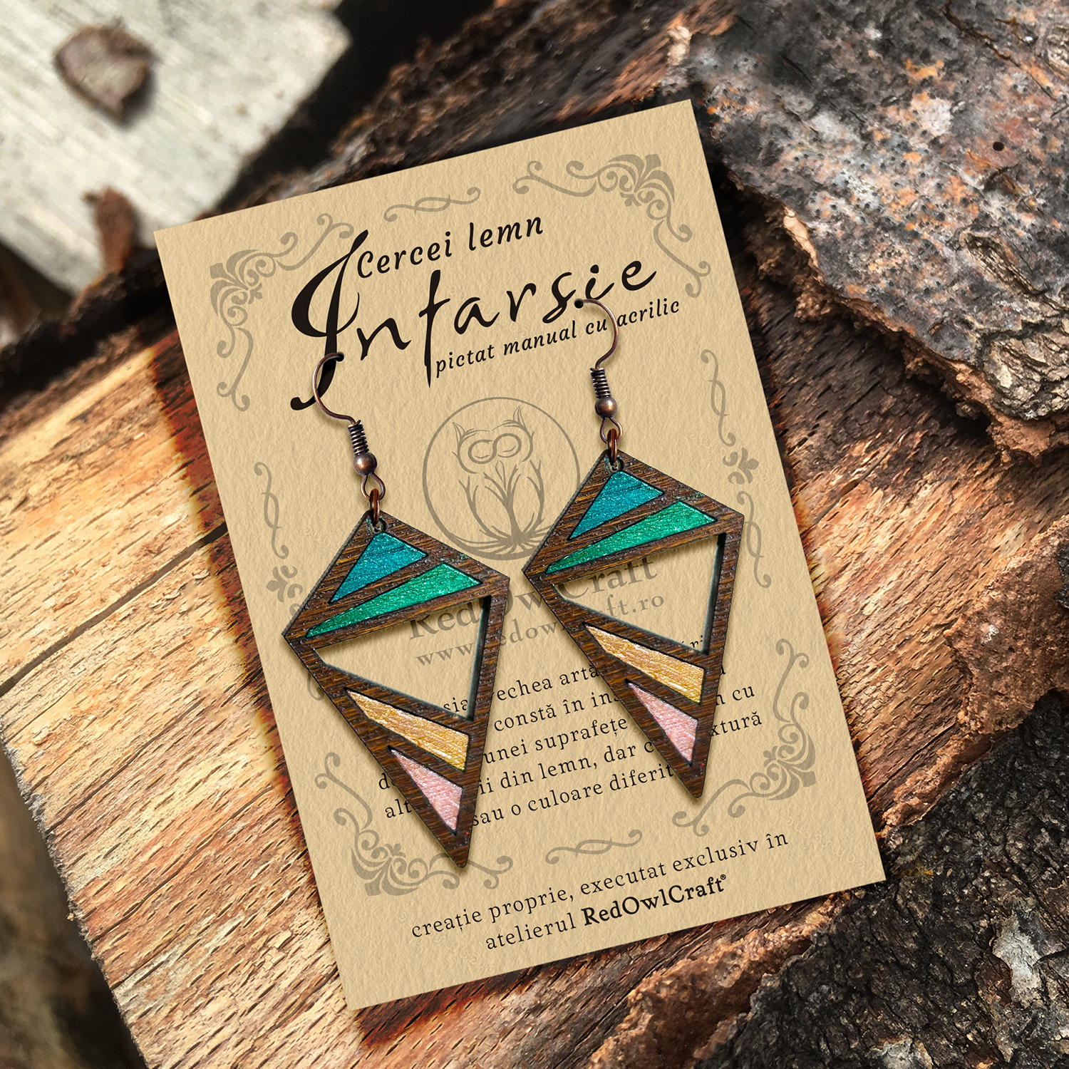 Cercei din Lemn Intarsie Mosaic – Nuc 5